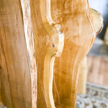 The pure thick hardwood for our tables comes directly from the trees that can quietly speak to the craftsman during the making one of our traditional looking tables. Our exclusive hand-crafted tables are engineered, stained and super-finished into a great table and a work of art, for any occasion of your own choosing.  These stunning tabletops- with their organic shape and high gloss multi-layered polyurethane finishes make them feel like a functional piece of art.
