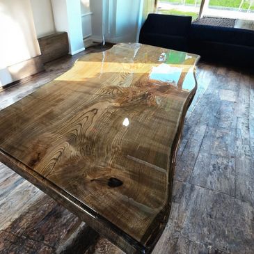 We love to transform the single slabs of our hardwood projects into tables of beauty for you. We always blend the topcoats in our carefully prepared quintessential handcrafted furniture to perfection, as if it were a new rebranding of an exciting and exquisite art form placed in your home for entertaining family, friends and all of your guests or relatives to admire and remember about your home.